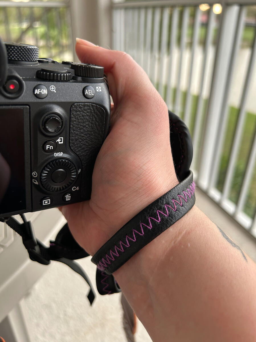 This Altura Photo hand strap has been a life saver. I use this strap because I can’t grip the camera securely with my right hand(the injured one) It anchors the camera to my wrist so I don’t drop it. My hand is pretty much cradled by the strap which is well made and adjustable so it’s a win win. Adding stability and reducing strain so I can shoot more safely and comfortably. Keep in mind that I don’t use my right hand to trigger the pictures, I use my left hand to press the trigger on the hot shoe of the Sony.