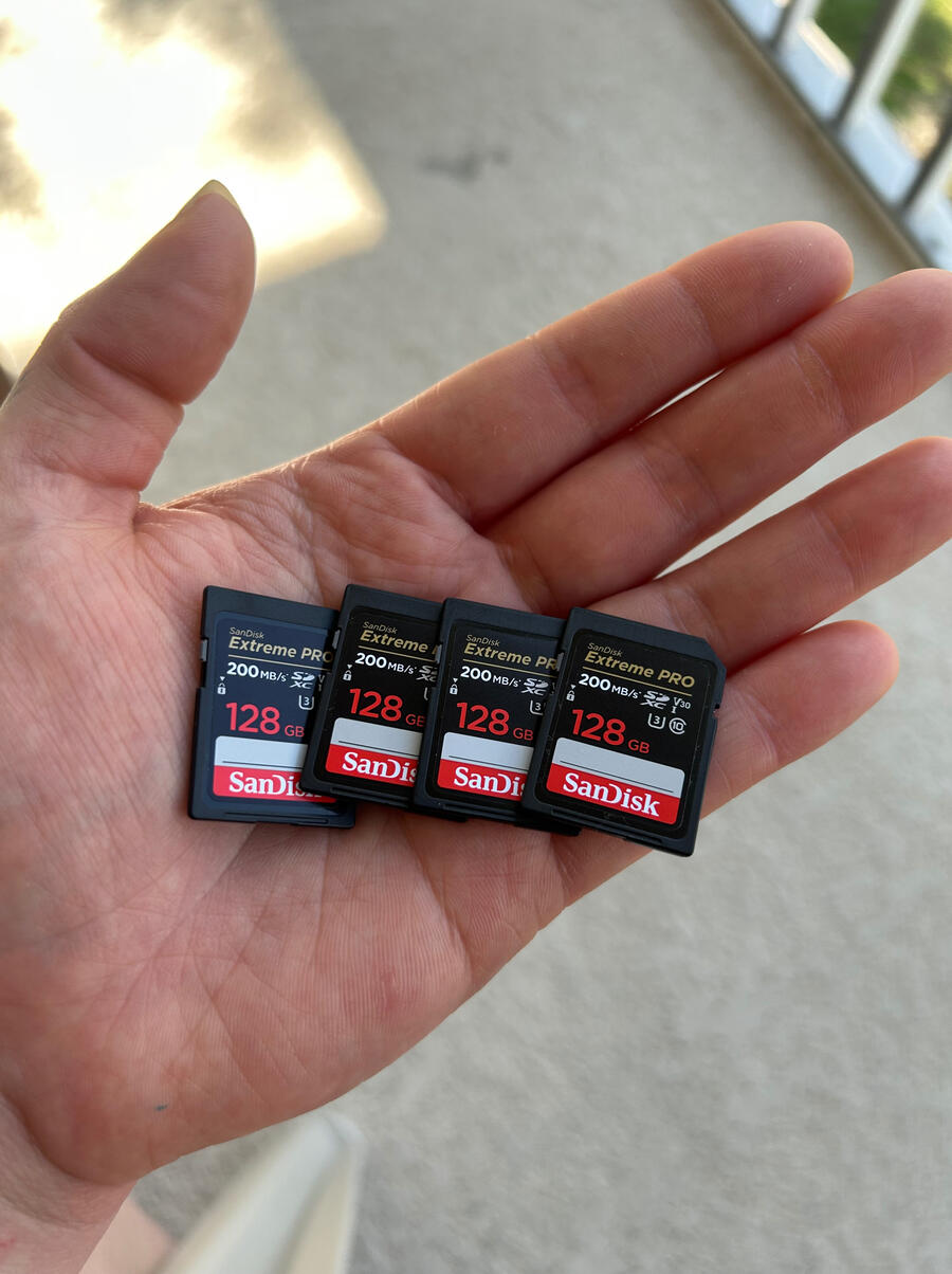 Since my Sony A7iii has dual slots, I need speedy memory cards. I use these SanDisk 128GB cards. They are fast, affordable, and reliable. I always carry two in camera( Raw + JPG) and two extras in my bag just in case.