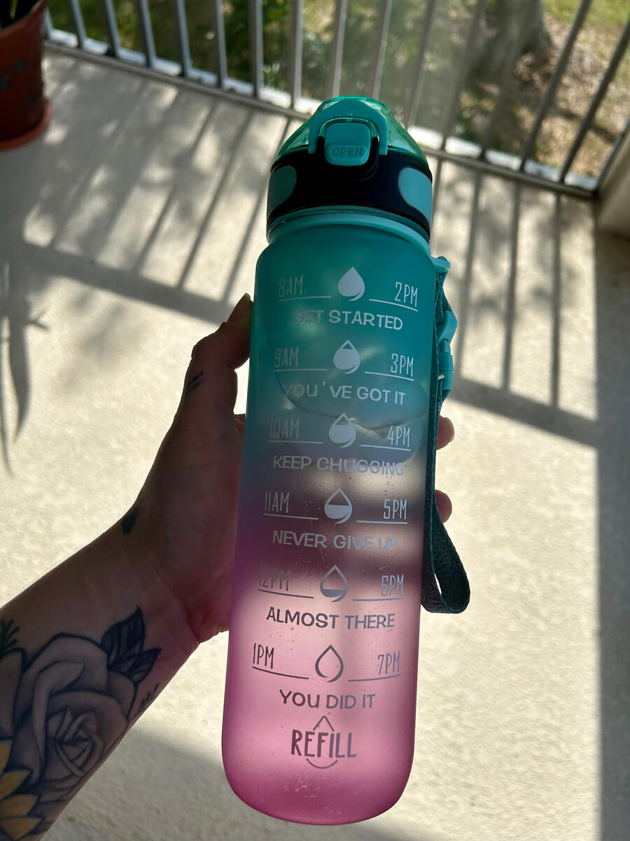 This Enerbone water bottle is my baby and I don’t go anywhere without it. It fits perfectly on the side of my backpack, car compartment, etc.